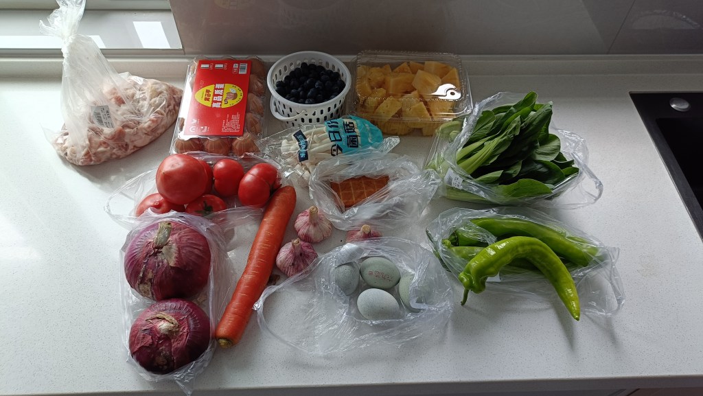Hierna nog even in de snoepwinkel wat fruit halen, bessen, ananas die voor je gesneden wordt en een doos eieren, was in de aanbieding. De losse eieren zijn duizendjaar eieren.